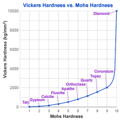 To understand the difference between the gemstones durability and hardness, it is important to understand one of the most important tests that gemologists use for identifying mineral specimens, the Mohs Hardness Test. This test compares the resistance of a mineral to being scratched by ten reference minerals known as the Mohs Hardness Scale. The test is useful because most specimens of a given mineral are very close to the same hardness. This makes hardness a reliable diagnostic tool for most minerals.