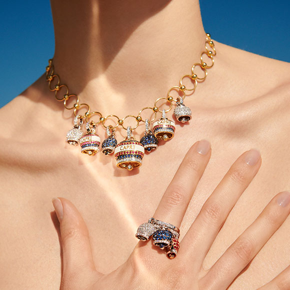 The iconic world renowned Chantecler bell ("Campanella") can be stacked or worn alone for dramatic impact.