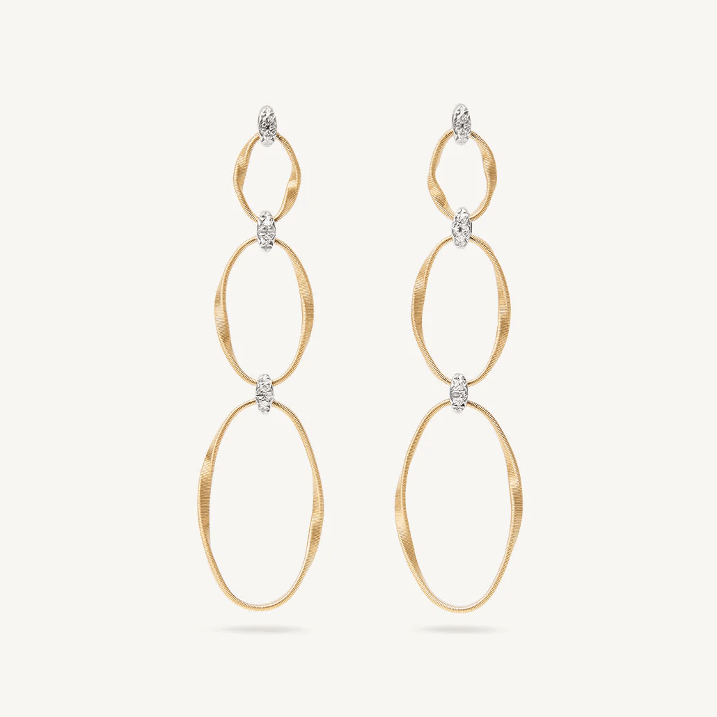 Marco Bicego Marrakech Onde Drop Earrings Diamonds 18k Gold 3 Links