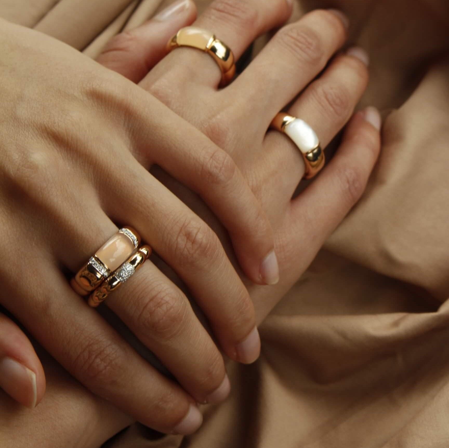 Al Coro La Piazza Ring Diamond Chalcedony Pink 18k Gold