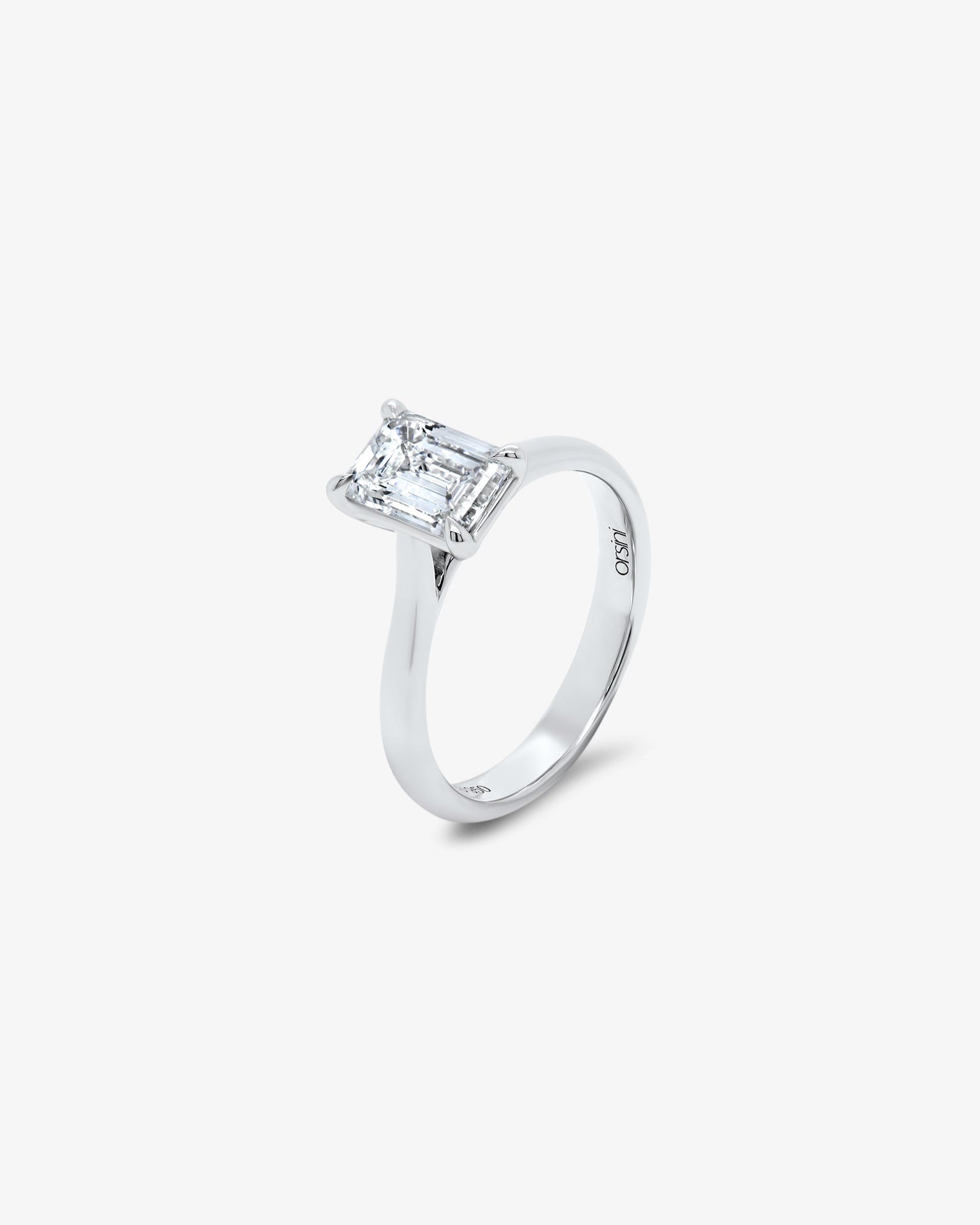 Classica Emerald Solitaire Diamond Engagement Ring in White Gold