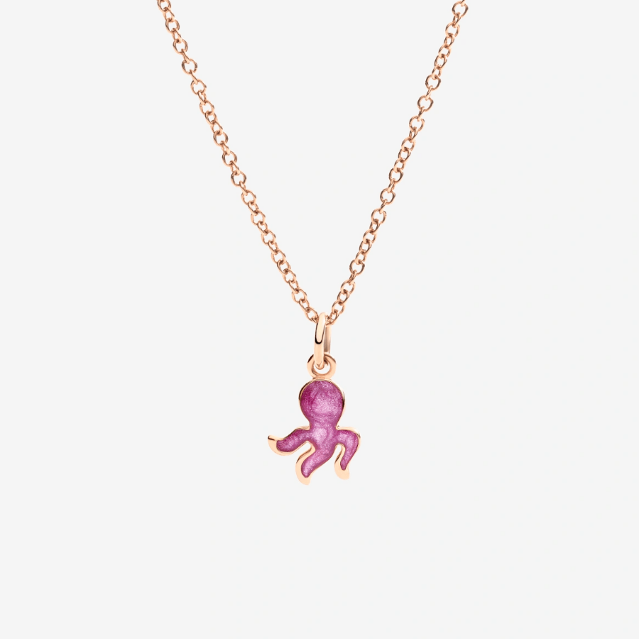 9K rose gold and light purple mother-of-pearl effect enamel Octopus charm. Black cord included.