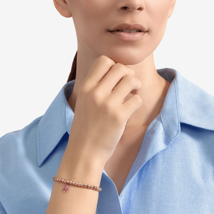 "Hold me tight" is the message of the Octopus. Follow it in its travels: it will guide you on an under-sea voyage, swimming among the waves of rose gold with its iridescent mother-of-pearl effect purple tentacles.