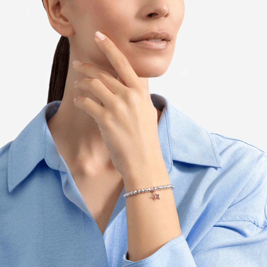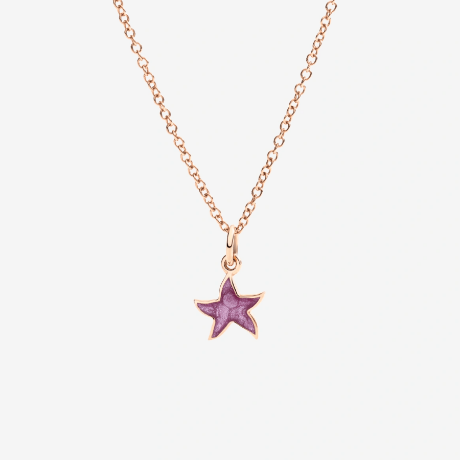 A galaxy of charm in the Stellina collection… whoever finds it is happy! Among the depths of the sea and the dream of a starry sky, make a wish and choose the star in rose gold embellished by lively purple mother-of-pearl effect enamel. Infinite constellations in DoDo style, to customize to make your light shine forever.