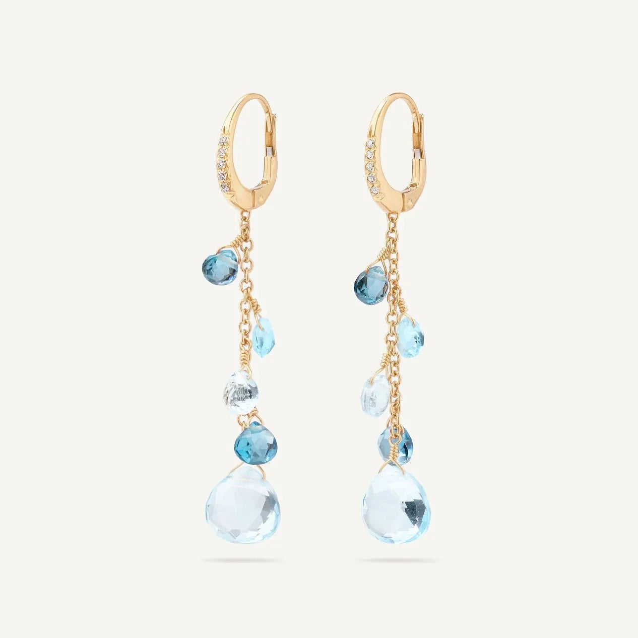 Marco Bicego Paradise 18K Gold Blue Topaz Earrings with Diamond Accent