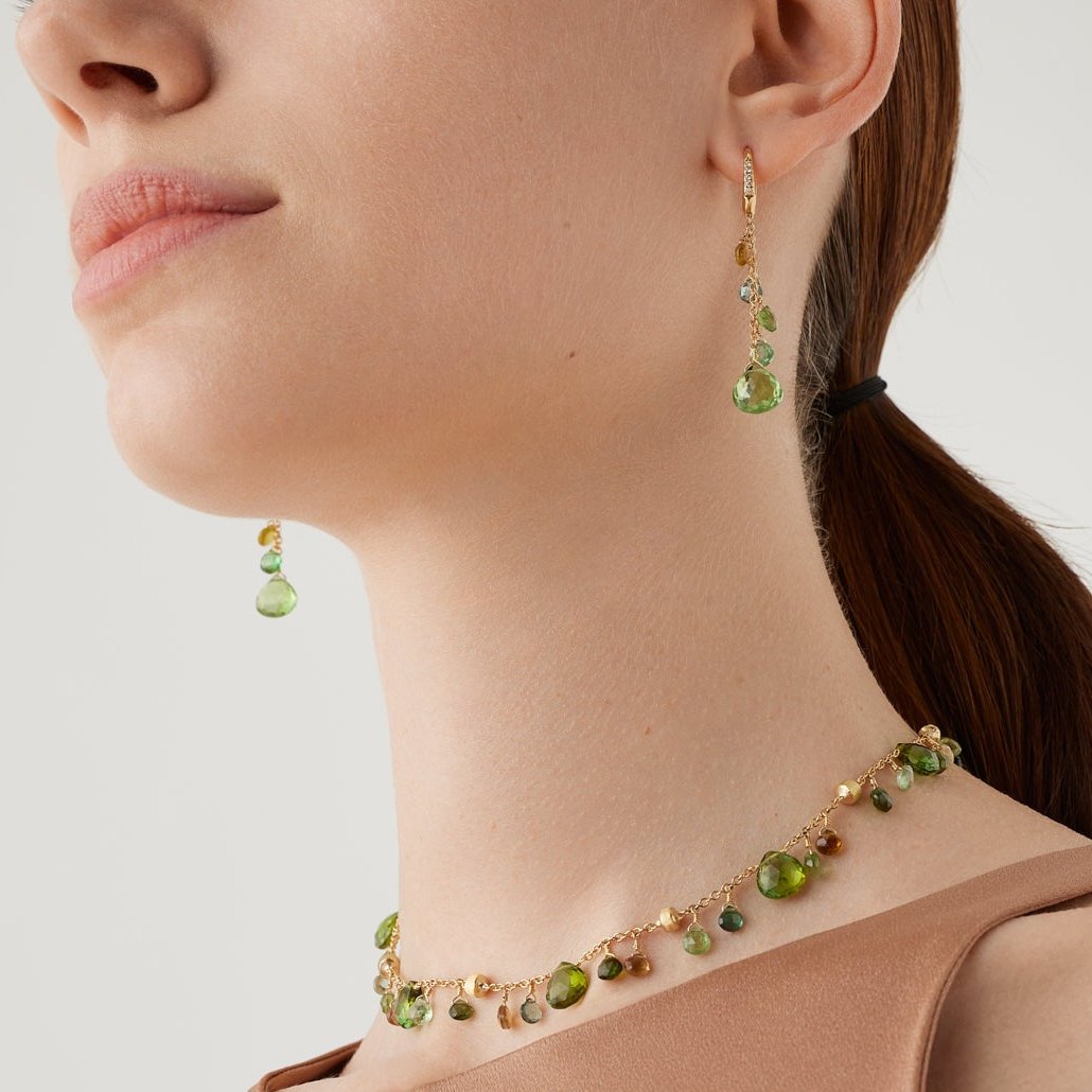 Marco Bicego Paradise 18k Gold Green Tourmaline Earrings with Diamond Accent