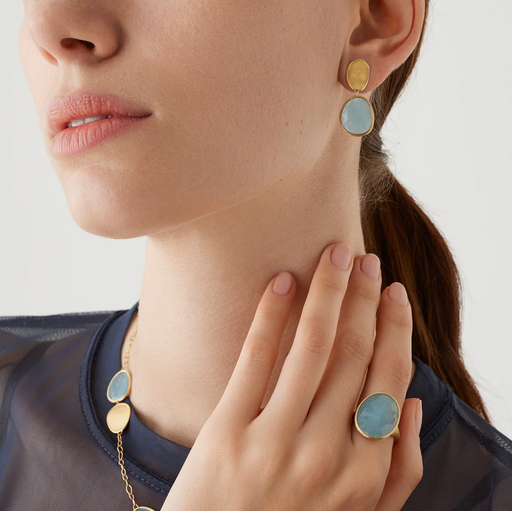 Marco Bicego Lunaria Aquamarine 18k Yellow Gold Earrings