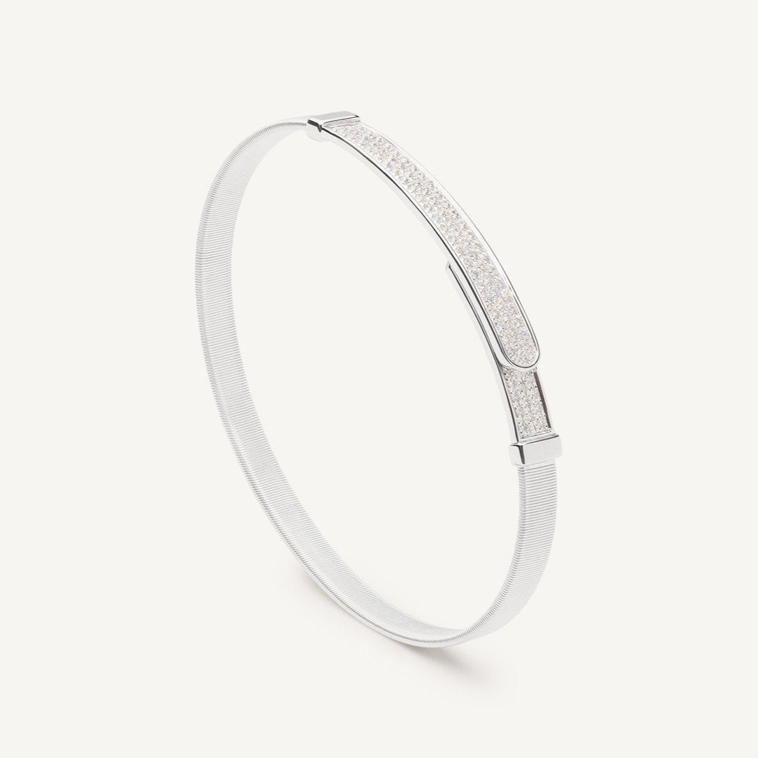 Marco Bicego Masai 18K White Gold and Diamond Pavé Thin Bangle Bracelet