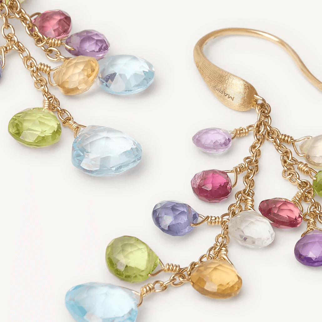 Marco Bicego Paradise 18k Gold Multi Strand Gemstone Earrings Long