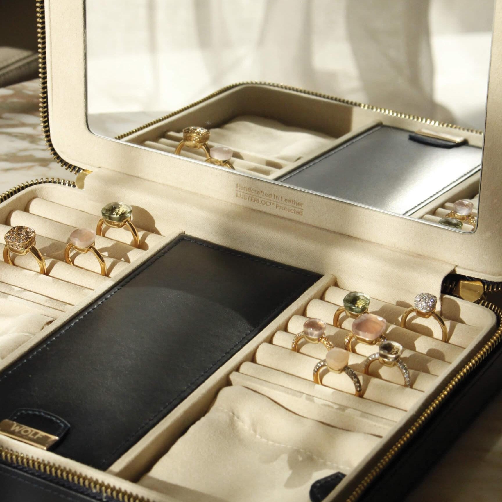 A new classic is born with Maria. Pure sophistication with clean lines and just the right amount of detail. Maria is for the traveller in love with cities they’ve never been to, and people they’ve never met. Our first complete travel collection wrapped in rich smooth leathers and stunning gold accents. Take Maria wherever you go while keeping your jewellery in place and creating a travel style that’s just for you – business, leisure, and everything in between.