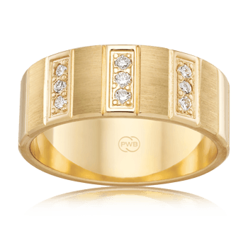 Mens Wide Wedding Ring made of Yellow Gold and Diamonds