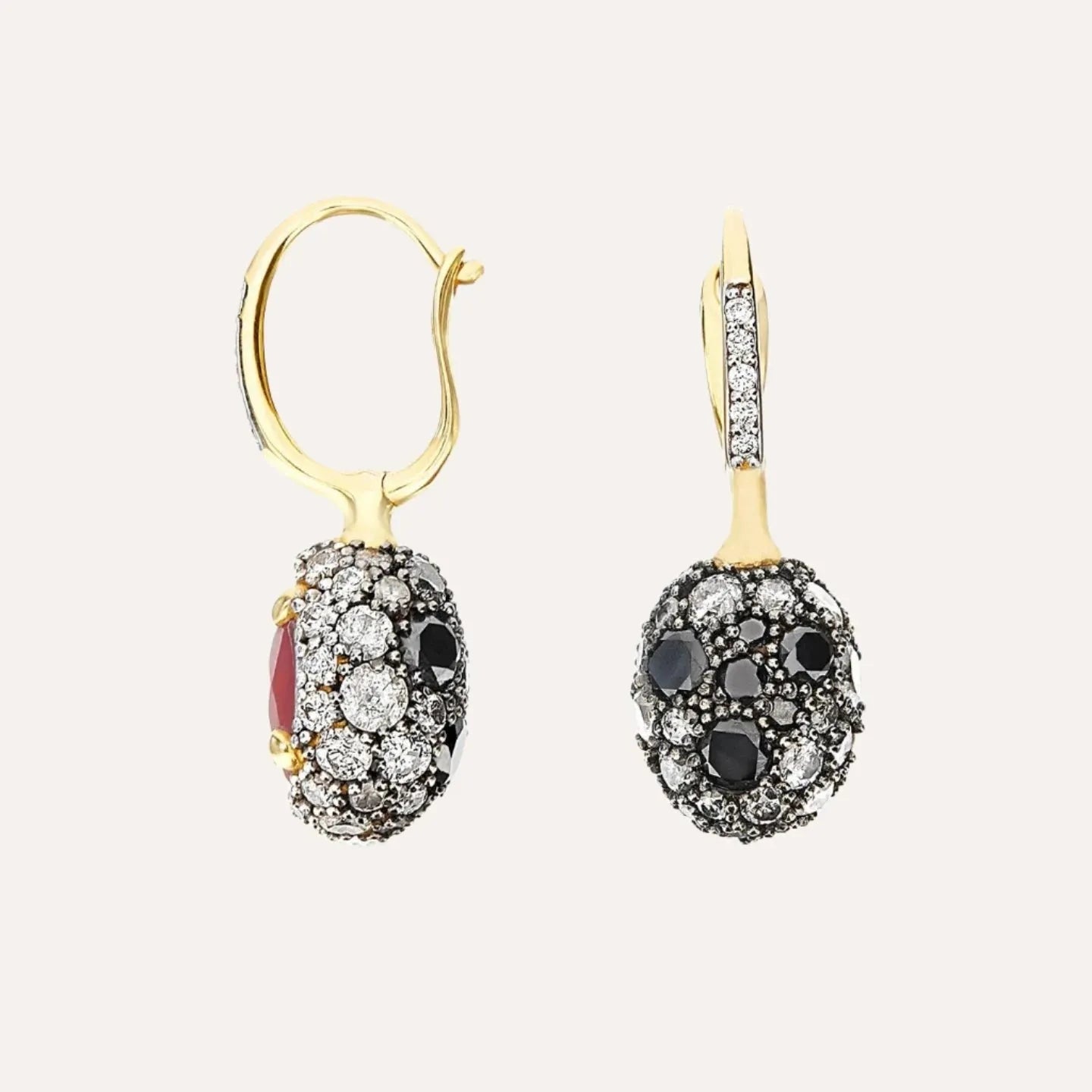 Nanis Reverse Gold, Rubies, Diamonds and Rock Crystal Double Face Ball Drop Earring (Small)