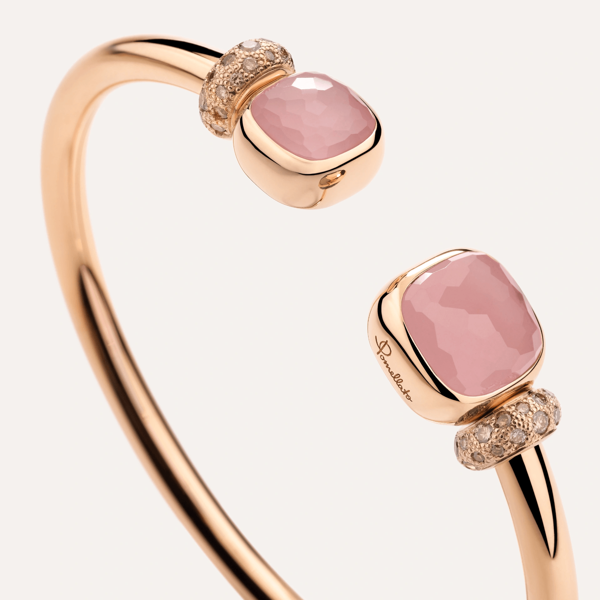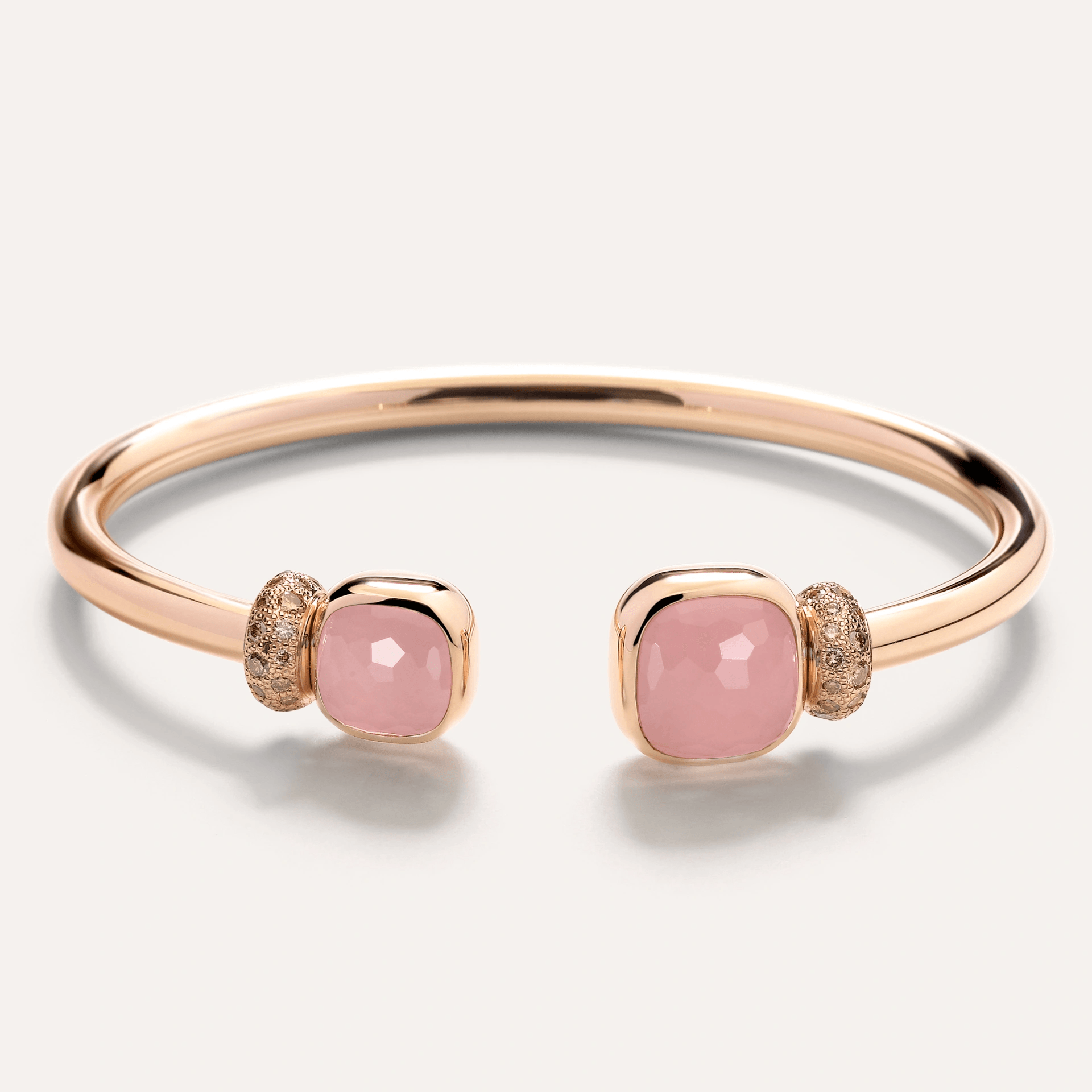 Pomellato Nudo Bangle in 18k Gold with Brown Diamonds, Rose Quartz, Chalcedony