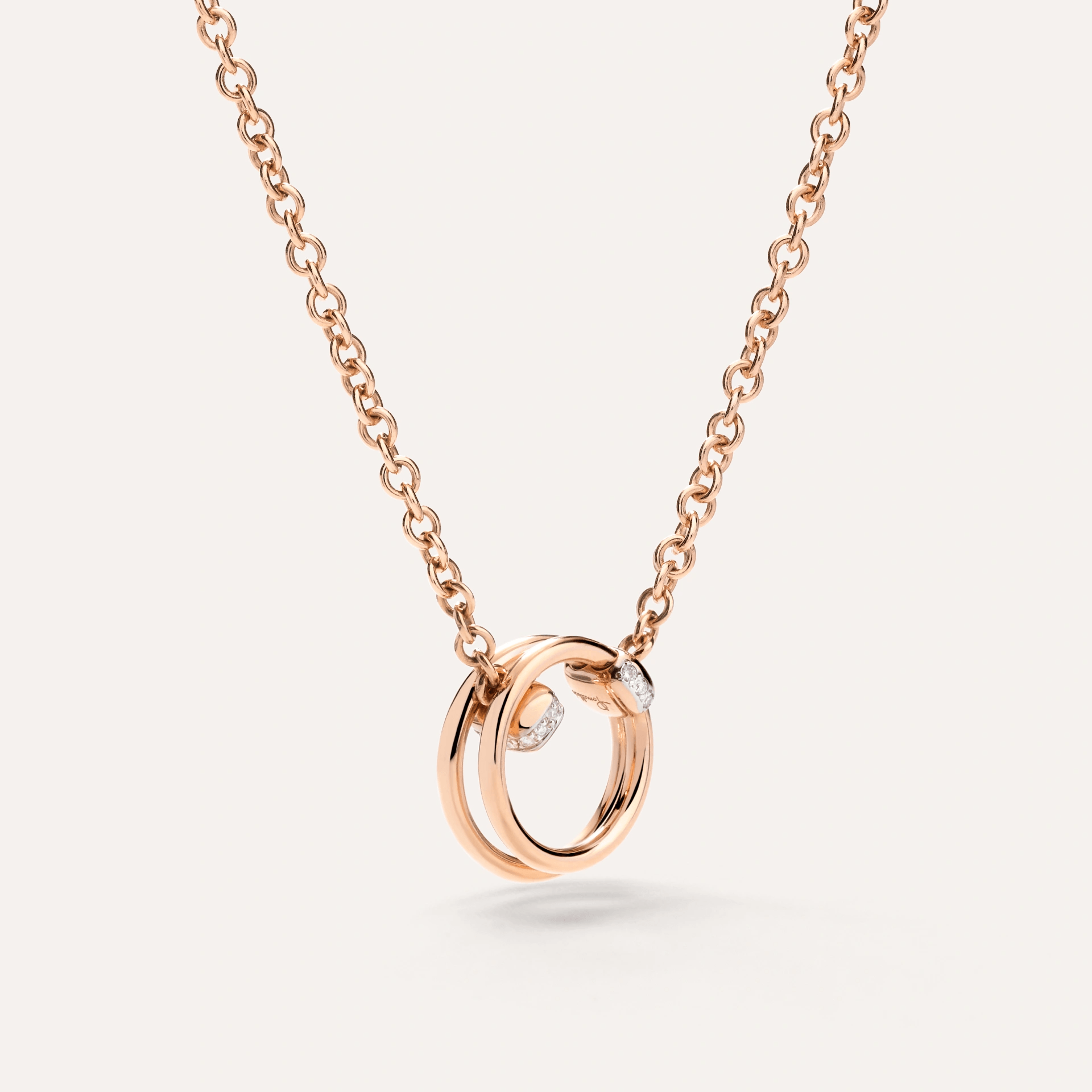 Deeply symbolic, the Pomellato Together collection captures the connections that bind us together, celebrating love in its many forms. The pendant features diamond-set gold links, a sparkling symbol of union. One of the mobile links allows the chain to slide along the space between the two rings: a tactile reminder of love’s freedom and cheerfulness.
